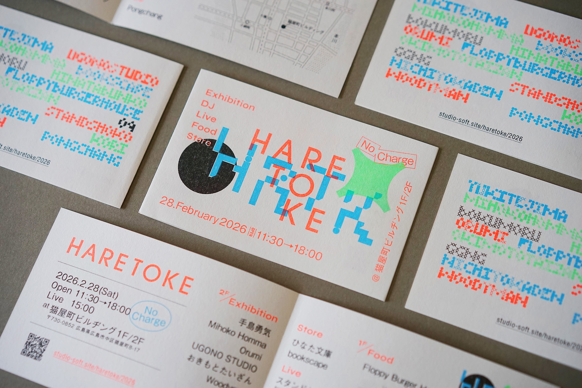 広島の猫屋町ビルヂングにて、10年ぶりのイベントを開催。顔なじみばかりながら実績豊富なメンバーが集まり、刺激的で楽しい一日になりました。当日はライブで参加、Digitaktはやっぱり楽しい。メインビジュアルは、以前制作したスケッチプログラムから着想を得た実験的なアプローチで、タイポグラフィをコードで生成。webサイトではアニメーションとして動かしています。